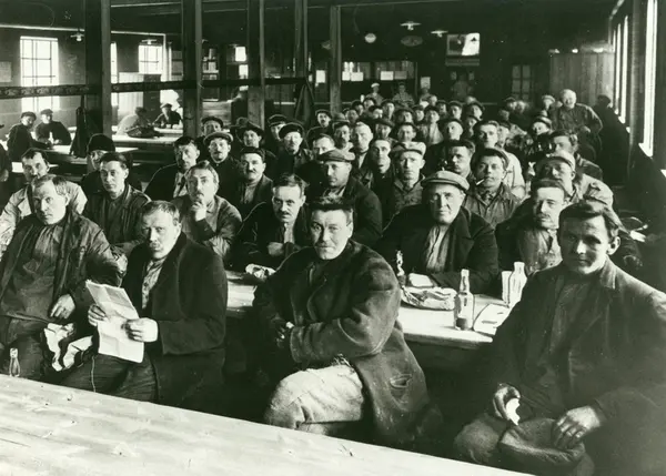 Lossearbeiderne på Oslo havn fikk en etterlengtet spise- og ventehall på utstikker 2 i 1928. Dette fotografiet er tatt under en matpause en gang i 1932.