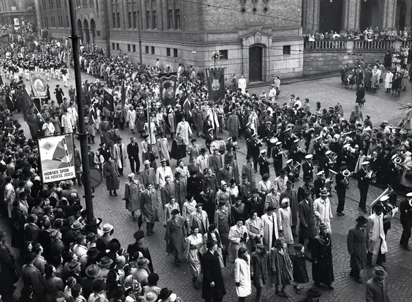 Korrekt referanse til dette bildet er "Fotograf: Ukjent. Arbeiderbevegelsens arkiv og bibliotek/0036607"