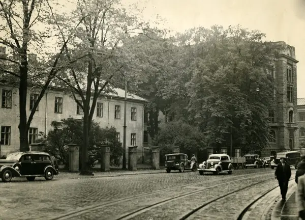 Akersgata, med Empirekvartalet og Militærhospitalet. Revet på midten av 1950-tallet. Til høyre: Den gamle regjeringsbygningen, nå Finansdepartementet..Foto september 1937