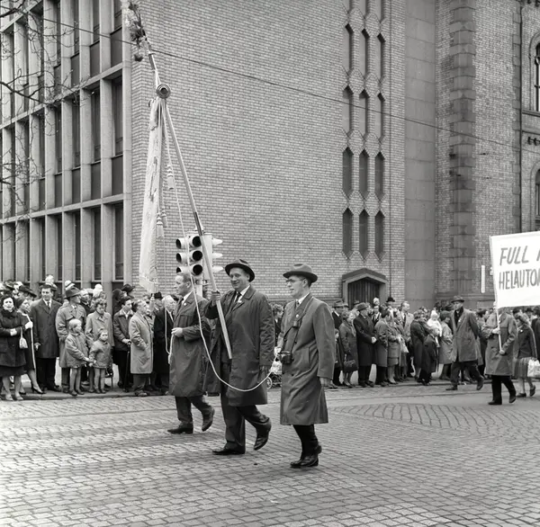 1. mai 1963 i Oslo.Demonstrasjonstog arrangert av Komiteen for faglig enhet med støtte av Sosialistisk Folkeparti (SF) og Norges Kommunistiske Parti (NKP).