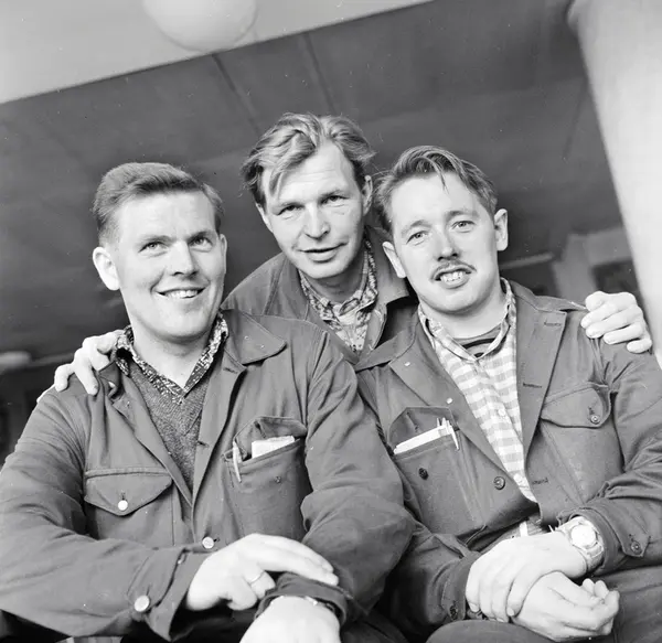 Arbeidsutvalget i Aker Verfts bedriftsklubb. Fra venstre: Thorbjørn Berntsen, formann, Bernt Larsen, sekretær og Aage Kristian Karlsen, viseformann. November 1962