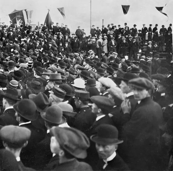 1. mai 1915 på Bislett stadion. I alt var 30.000 mennesker samlet på Bislett stadion, 15.000 av disse hadde deltatt i 1. mai toget. Dagen var preget av antimilitaristiske paroler og protester mot voldgiftsloven.