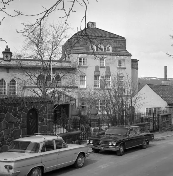 Kristinelundveien 22 på Frogner i Oslo. Villa for skipsreder Mauritz Bryde. Oppført 1916. .Brukt av SS og Gestapo - Polizeigericht Nord under annen verdenskrig..Foto 1965 - 1970.