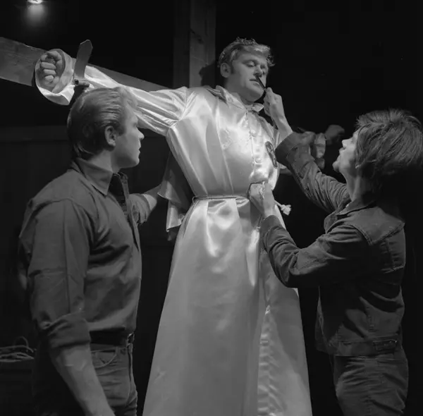 Nationaltheatret. Amfiscenen..TAKK FOR AT DE KOM, MR. PIKE av Edward Hagopian..Premiere: 18.09.1969..Tor Stokke som Mr Pike, Bjarne Thomsen som Alvin og Kyrre Haugen Bakke som Waight.