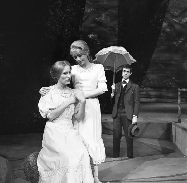Nationaltheatret. Hovedscenen..FRUEN FRA HAVET av Henrik Ibsen. Premiere: 03.02.1968..Medvirkende: Per Sunderland i rollen som dr. Wangel, Henny Moan, Joachim Calmeyer, Tone Schwarzott, Wenche Medbøe, Jørn Ording, Gerhard Bjelland, Gunnar Olram og Torbjørn Halvorsen.