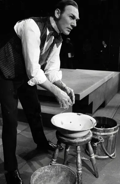 Nationaltheatret. Hovedscenen..SEMMELWEIS av Jens Bjørneboe. Premiere: 19.09.1969..Medvirkende: Sverre Hansen, Tor Stokke, Randi Koch, Per Sunderland o. a..Joachim Calmeyer i rollen som Ignaz Semmelweis.