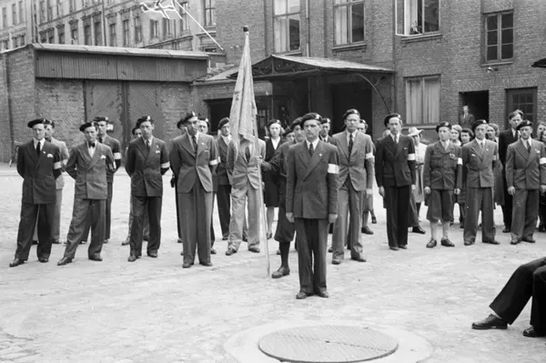 Korrekt referanse til dette bildet er "Fotograf: Ukjent. Arbeiderbevegelsens arkiv og bibliotek/AAB-107554"