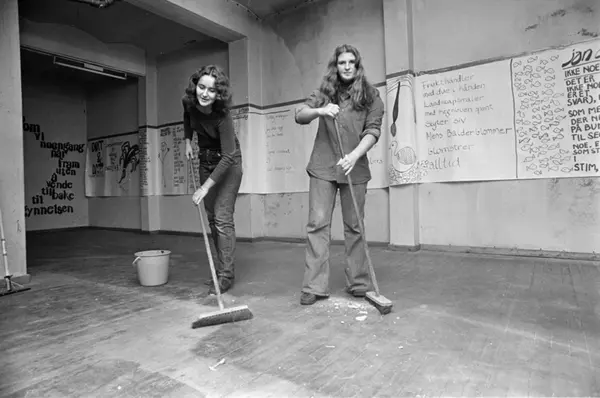 Rodeløkka.Tordis Hveem og Ida Holter gjorde dugnad i går for å få alt klart til hyggekvelden som åpnet Rodeløkka-senteret for aktivitet og kultur i Gøteborggata..September 1975