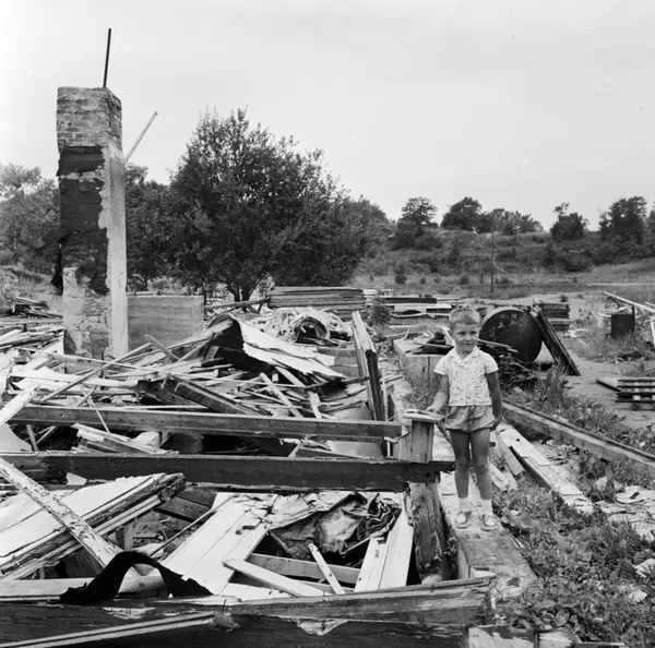 Hovedøya. En av de tyske militærbrakkene er revet. Etter krigen fungerte brakkene som Statens interneringsleir for kvinner og senere som nødboliger for statsansatte. August 1963