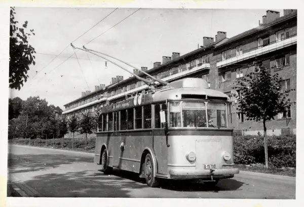 Bilder av produksjon fra Nebb - Norsk Elektrisk & Brown Boveri AS. Trolleybusser til Oslo Sporveier, fotografert i Christian Michelsens gate. Levert 1943.