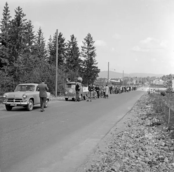 Arbeiderbladet arrangerer moped-tur fra Yongstorget til Frambu (Siggerud i Ski kommune) i samarbeid med Norges Sykkel- og Mopedeieres Forening, 10. juni 1958.