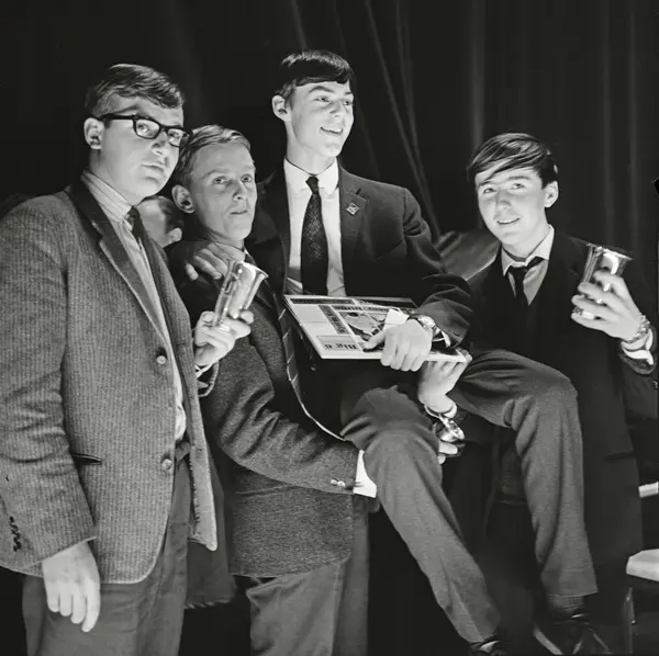 Vinnerne av NM i jazz for amatører 1962; Jan Garbareks kvartett. Fra venstre: Hans Marius Stormoen, Torgrim Sollid, Jan Garbarek og Morten Lassem. Klingenberg kino. 25. november 1962.