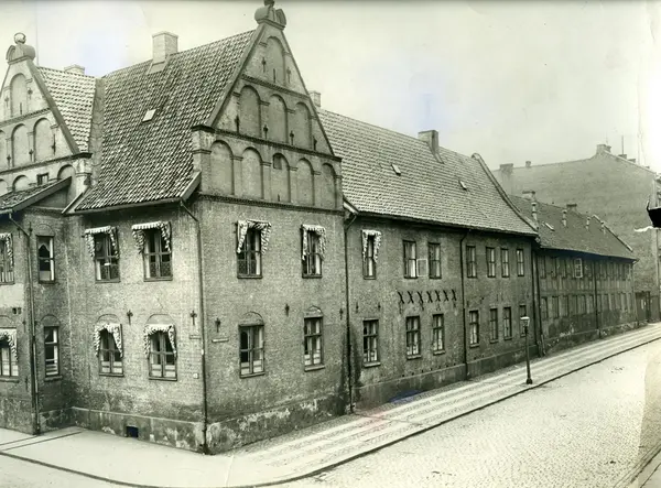 Garnisonssykehuset (Rådmannsgården) i Rådhusgata, byens eldste gjenværende bygning fra den opprinnelige kvadraturen. Oppført for rådmann Lauritz Hansen i 1626 (fasaden her mot Nedre Slottsgate, resten bygget senere). Sykehus i 1850-årene. Kjøpt av kommumen i 1897, kontorer for Kristiania Elektrisitetsverk.