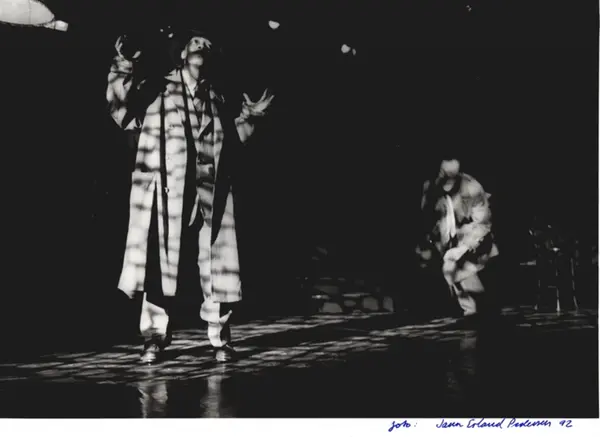 "Mr. Bojangles", Teaterforestilling av Cliff A. Moustache på Parkteatret. 14-23. oktober 1992. Medvirkende: Bojangles: Zainab McCoy / Rose: Hannah Gyasi-Adonten / Joe: Karel Dobry / Miss Blab: Nancy Mannes / Waiter Fizz: Behruz Arshi / Jimmy: Moshe Abraha / Johnny: Alex LorenzoMusikere: Henry Bwire / Bjørn Andersen / Mamadi Jobarteh / Dennis YanezKontakt Nordic Black Theatre ved ev. bestilling av kopier.