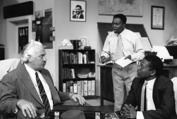 "Hang on in There, Nelson", teaterforestilling av Arthur Maimane på Parkteatret. 14-21. november 1996. Samarbeid med Windybrow Center For The Arts og Kunstnere mot Apartheid.Regi: Walter ChakelaKontakt Nordic Black Theatre ved ev. bestilling av kopier.