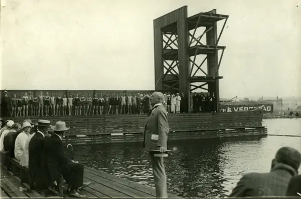 Svømmestevne og muligens åpning av svømmestadion nr. 1 på Filipstadkaia. Anlegget ble åpnet i 1925 og tjente svømmesportens intresser inntil 1932 da det måtte rives på grunn av bryggeutvidelsen.