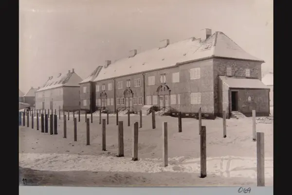 Bebyggelse i nåværende Ansgar Sørlies vei på Lille Tøyen haveby (hageby). Sannsynligvis fra 1920-tallet. Albumtittel: "Fotografier over Kristiania kommunes boligbebyggelse".