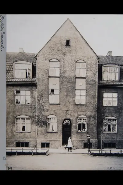 Komplekset Marcus Thranes gate 8 - 20. Husfasader (nr.12) mot Marcus Thranes gate (tidl. Nordre Ringgate). Sannsynligvis fra 1920-tallet. Albumtittel: "Fotografier over Kristiania kommunes boligbebyggelse".