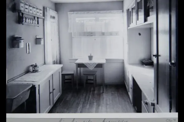Kjøkken i bolig i Sandakerveien 83-95. (A/S Sandakerveien Byggeselskap.) Sannsynligvis fra 1920-tallet. Albumtittel: "Fotografier over Kristiania kommunes boligbebyggelse II".