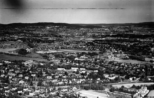 Korrekt referanse til dette bildet er "Fotograf: Widerøes Flyveselskap / Helge Skappel. Oslo byarkiv/A-20027/Ua/0002/274"