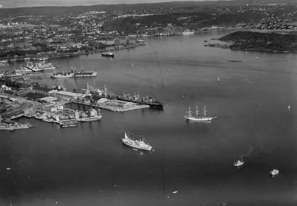 Korrekt referanse til dette bildet er "Fotograf: Widerøes Flyveselskap / Rolf Ingelsrud. Oslo byarkiv/A-20027/Ua/0006/054"
