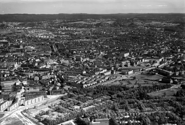 Korrekt referanse til dette bildet er "Fotograf: Widerøes Flyveselskap / Helge Skappel. Oslo byarkiv/A-20027/Ua/0014/042"