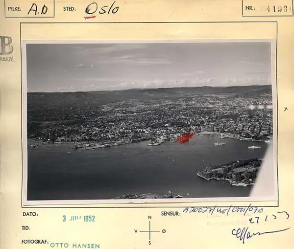 Korrekt referanse til dette bildet er "Fotograf: Widerøes Flyveselskap / Otto Hansen. Oslo byarkiv/A-20027/Ua/0015/070"