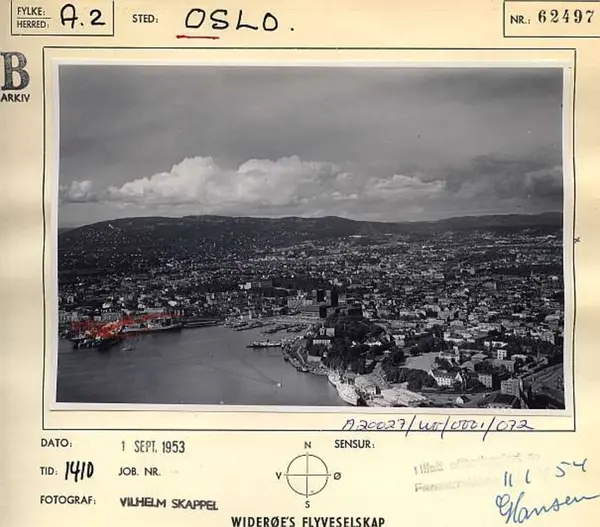 Korrekt referanse til dette bildet er "Fotograf: Widerøes Flyveselskap / Vilhelm Skappel. Oslo byarkiv/A-20027/Ua/0015/072"