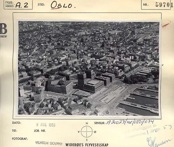 Korrekt referanse til dette bildet er "Fotograf: Widerøes Flyveselskap / Vilhelm Skappel. Oslo byarkiv/A-20027/Ua/0015/074"