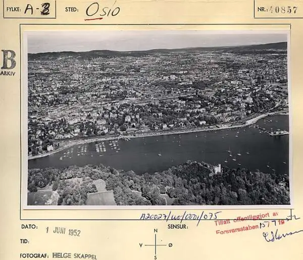 Korrekt referanse til dette bildet er "Fotograf: Widerøes Flyveselskap / Helge Skappel. Oslo byarkiv/A-20027/Ua/0015/075"