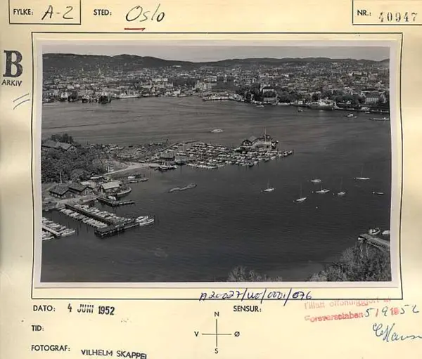 Korrekt referanse til dette bildet er "Fotograf: Widerøes Flyveselskap / Vilhelm Skappel. Oslo byarkiv/A-20027/Ua/0015/076"