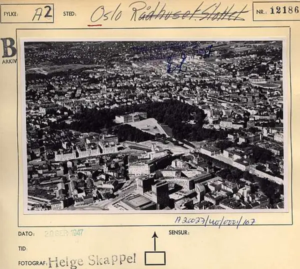 Korrekt referanse til dette bildet er "Fotograf: Widerøes Flyveselskap / Helge Skappel. Oslo byarkiv/A-20027/Ua/0015/107"