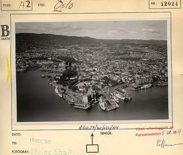 Korrekt referanse til dette bildet er "Fotograf: Widerøes Flyveselskap / Helge Skappel. Oslo byarkiv/A-20027/Ua/0015/114"