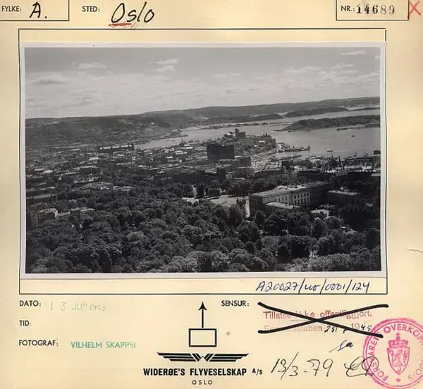 Korrekt referanse til dette bildet er "Fotograf: Widerøes Flyveselskap / Vilhelm Skappel. Oslo byarkiv/A-20027/Ua/0015/124"