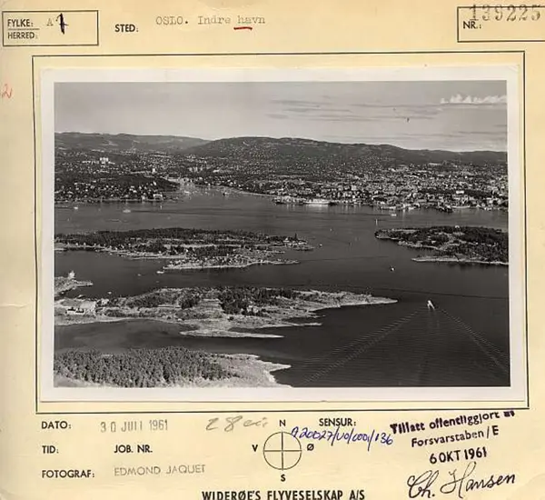 Korrekt referanse til dette bildet er "Fotograf: Widerøes Flyveselskap / Edmond Jaquet. Oslo byarkiv/A-20027/Ua/0015/136"