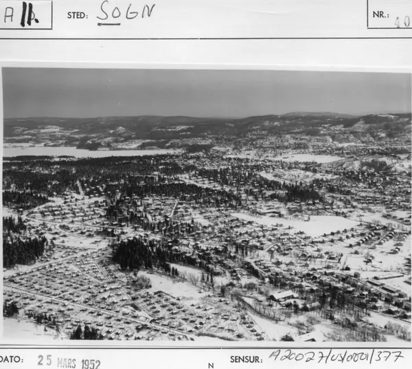 Korrekt referanse til dette bildet er "Fotograf: Widerøes Flyveselskap / Helge Skappel. Oslo byarkiv/A-20027/Ua/0019/377"