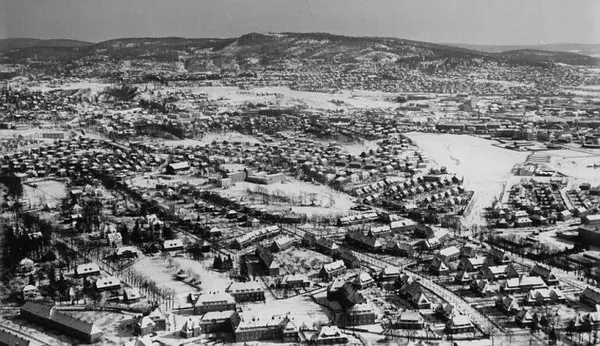 Korrekt referanse til dette bildet er "Fotograf: Widerøes Flyveselskap / Helge Skappel. Oslo byarkiv/A-20027/Ua/0021/107"