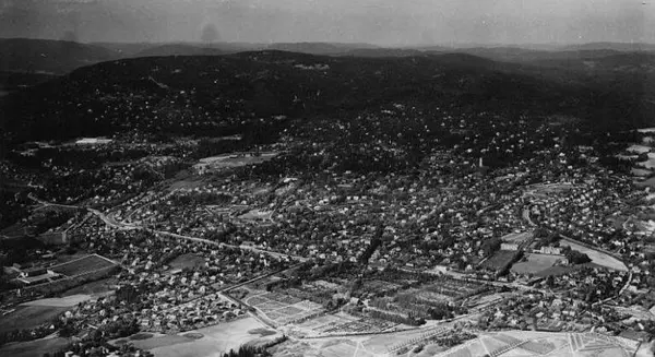 Korrekt referanse til dette bildet er "Fotograf: Widerøes Flyveselskap / Helge Skappel. Oslo byarkiv/A-20027/Ua/0022/112"