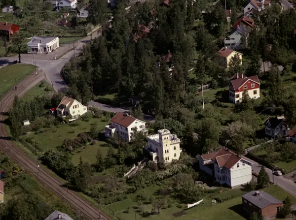 Kjelsåsveien, Midtoddveien, Kjelsåsalléen trikkeholdeplass (i Grefsenveien). Huset med tårnet er Villa Rosenborgen, Kjelsåsveien 118. Kjelsås bad i nedre høyre hjørne, Kjelsås samvirkelag (Coop) i øvre venstre hjørne. (Flyfoto)