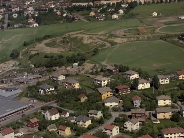 Villabebyggelse.Treningsområde for trening av hester på Bjerke travbane. Økern torv til venstre. Økernveien,Lundliveien innover mot høyre. Wilsters vei. Skogvollveien.
