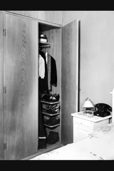 Fra brannsjefens tjenesteleilighet. Soverom med telefon på sengekommoden. Albumtittel: "Oslo hovedbrannstasjon" (eg. identisk bildetittel til alle bildene i albumet)