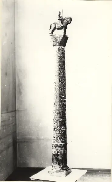 Modell av Eidsvollsøylen laget av Wilhelm Rasmussen som et minnesmerke over medlemmene av riksforsamlingen på Eidsvoll 1814. Planlagt oppført på Eidsvollsplass foran Stortinget, men dette ble aldri gjort. Oppført i 1992 som Sagasøylen i Bøverdalen.