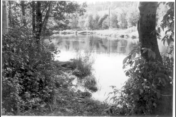 Idylliske og naturskønne omgivelser, antagelig ved Akerselvas nordre del, muligens mellom Stilla og Grandalen eller noen av tilløpene til Maridalsvannet.