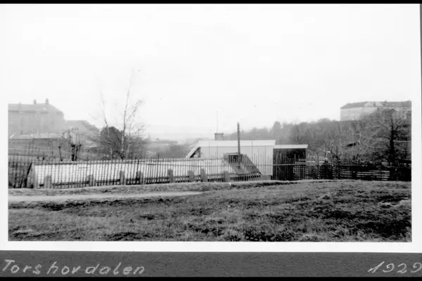 Utsikt over Torshovdalen sett mot syd. Rosenhoff skole til venstre, Torshov skole til høyre. Før opparbeidelse av området til park. Albumtittel: "Torshovdalen"