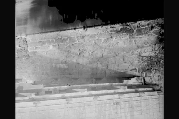 Ombyggingsarbeider på Grünerbrua. Stadsingeniøren - Fotografier af Kristiania (albumtittel). Ca 1892, basert på øvrige daterte bilder i samme album. Akerselva.