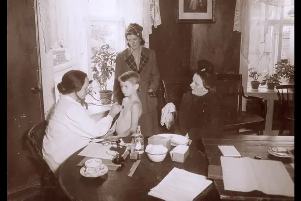 Danskehjelpens suppestasjoner i Oslo under okkupasjonen. Bilder samlet (og muligens tatt) av overlærer Katrine Arnesen (ved Sagene skole). I Gamlebyen menighetshus foregikk kokingen av suppe i kjelleren på bryggepannen.