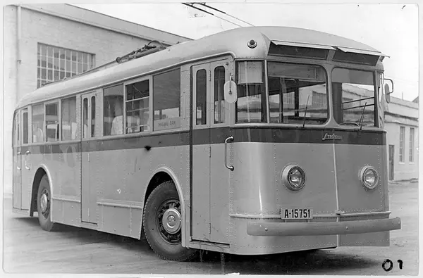 Oslo Sporveiers trolleybuss A-15951, den første av femti enheter med reg. nr A 15751 - A 15800 som ble levert 1947 - 49. Den ser ny ut, de blanke hjulkapselene er fortsatt på - de var borte utpå 50-tallet.