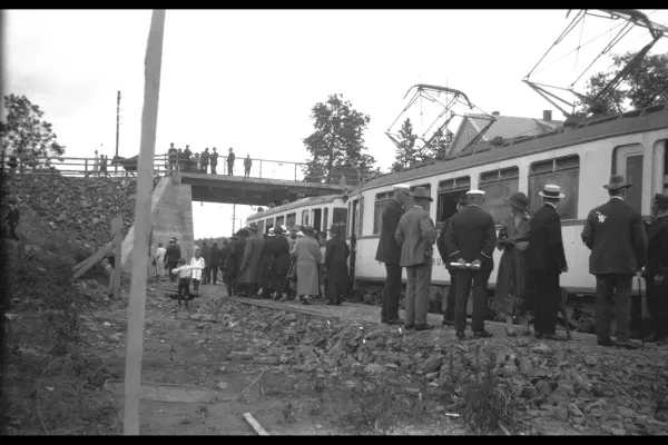 Forlengelsen av Lilleakerbanen til Bekkestua er ferdig. Fra den midlertidige stasjonen på Bekkestua. Linjen frem til Haslum og Avløs åpnet 3. november 1924.