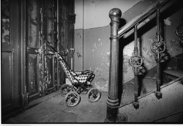 Trappeoppgang med barnevogn foran inngangsdøra. Motzfeldts gate 22. Fotografiet er fra prosjektet og boka ''Oslo-bilder. En fotografisk dokumentasjon av bo og leveforhold i 1981 - 82''. Kontakt Samfoto/Scanpix ved ev. bestilling av kopier.