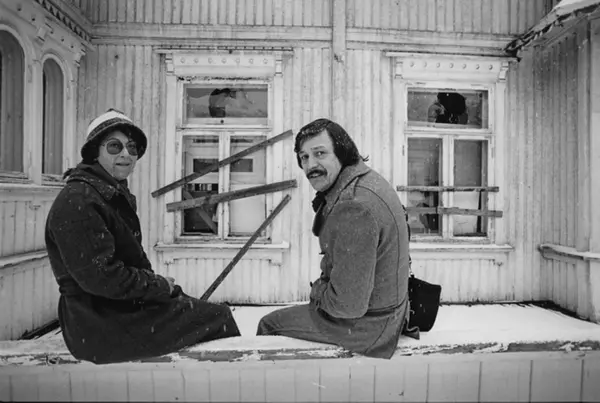 Fra Schafteløkken, som da var sterkt forfallen. Ole Daniel Bruun og ukjent person. Se også A-70013/Uc/0001/013 og A-70013/Uo/0001/009. Fotografiet er fra prosjektet og boka ''Oslo-bilder. En fotografisk dokumentasjon av bo og leveforhold i 1981 - 82''. Kontakt Samfoto ved ev. bestilling av kopier.